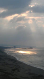砂丘より。写真が下手くそ過ぎますが、雲間から降り注ぐ光が非常に美しかったです。