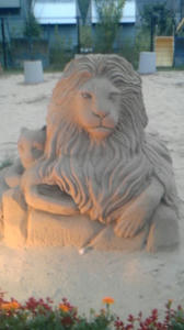 砂像美術館にて。この奥にはもっとダイナミックで繊細な造りの砂像も多かったです。